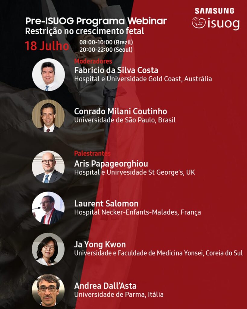 Amanhã, terça-feira, dia 18 de julho, às 8h (horário de Brasília), você tem a oportunidade de participar gratuitamente online do Webinar sobre Destaques em Restrição no Crescimento Fetal com a moderação dos Médicos – Dr Fabricio da Silva Costa e Dr Conrado Milani Coutinho – e apresentação de palestrantes médicos internacionais do Reino Unido, França, Coreia do Sul e Itália